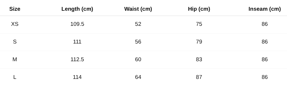 Here you’ll find our size chart including waist, hips, length, and inseam measurements for the sizes currently available.